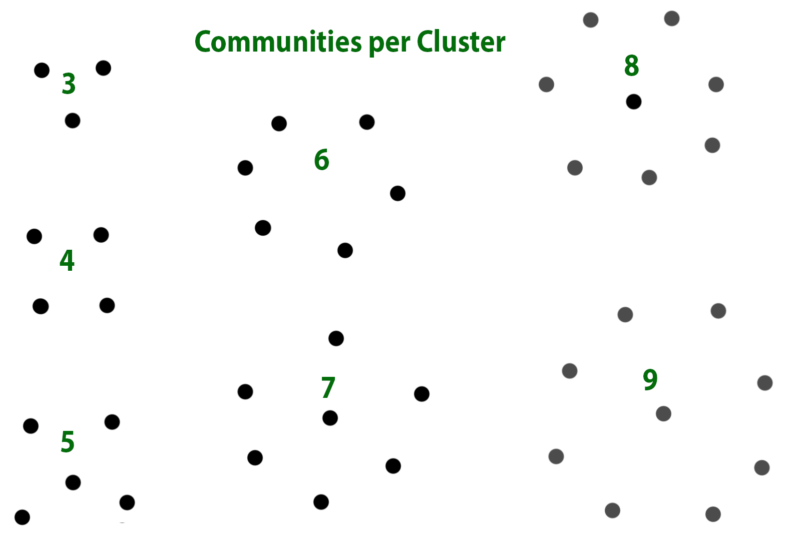 Communities of up to 50 shall be clustered in groups of 3–10 communities close enough (100–500 meters apart) to allow for mutual protection and support.