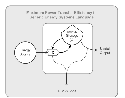 Odum & Pinkerton [11] conclude that in order for a system to operate at maximum power, its efficiency should be about 50% of the ideal ‘reversible’ efficiency.