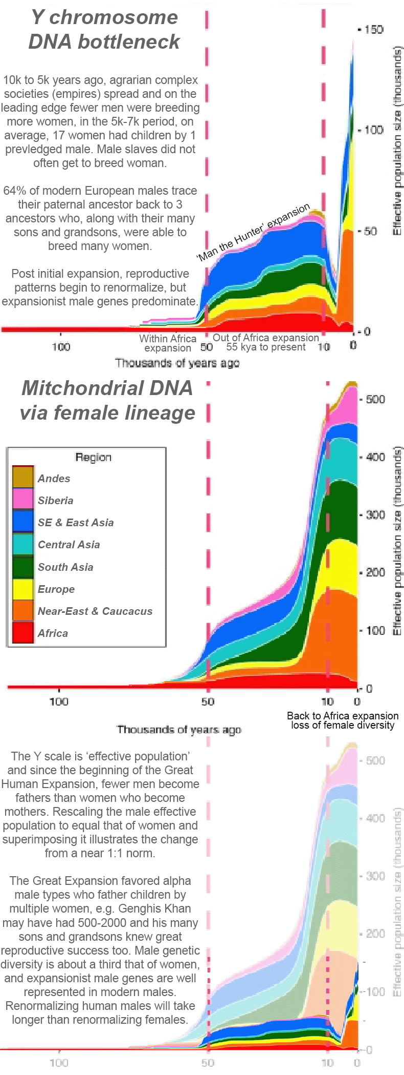 Some modern humans are more r-selected than others. The genetic diversity of women is about three times that of men because at various periods in the last 75k years a few men did most of the breeding. Some 64% of modern European males can trace their paternal lineage back to just 3 male progenitors, conquerors who, after killing the adult males not turned into slaves, bred hundreds of women each whose many sons endeavored to do the same if on a lesser scale.