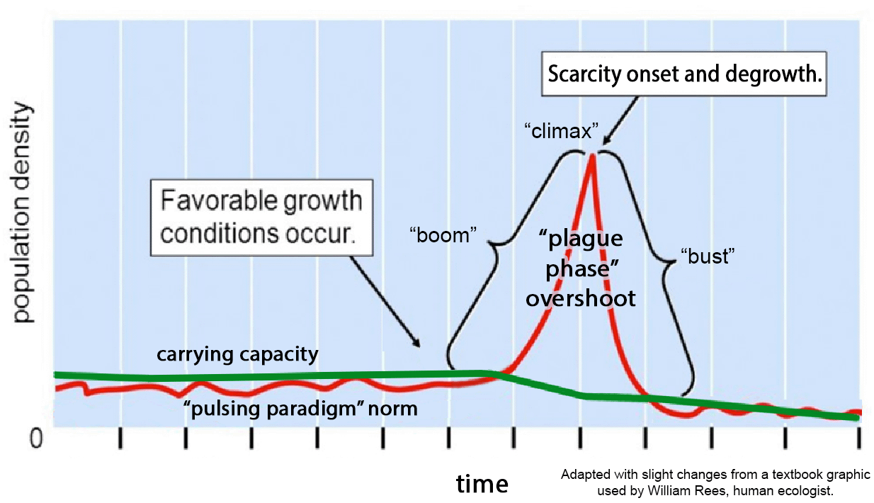 For over six million years normal humans, people of place, endeavored to live within limits (carrying capacity). Half of offspring died before becoming reproductive adults because sexual reproduction creates variation. Variations of what works tend to mostly not work as well, but some work better, so if those of the next generation who don’t function as well as their parents generation die, their death (or non-reproduction) is the NECESSARY price paid for the few who are marginally more adapted to persist than their parents, such that the frequency of their genes increase in the next generation and, long term, humans persist (evolve).