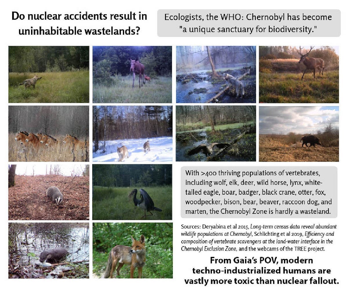 Wolves are K-selected. They do not overshoot carrying capacity and kill all prey animals (they don’t have guns), degrade their habitat until it cannot support them to prosper for a time. Dogs are r-selected to breed continuously without limit until there is no kibble, e.g. feral dogs in the Chernobyl Exclusion Zone (now inhabited by about 120 wolves and all remaining feral dogs are fed by humans who work in the CEZ — the dogs may never evolve to persist without being dependent on humans). Modern humans and dogs are r-selected to expand, to maximize growth, consumption, their numbers. Modern humans took 12 years to go from 7 to 8 billion people who would rather believe than know.