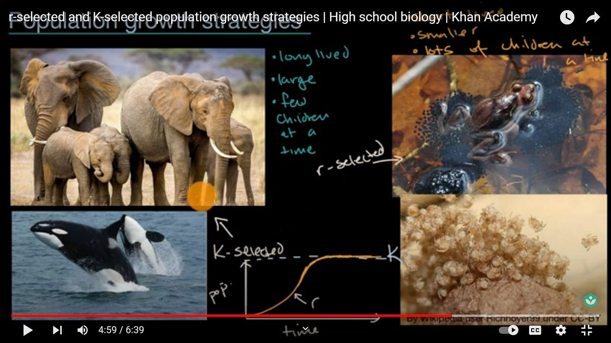 r-selected and K-selected population growth strategies | High school biology | Khan Academy